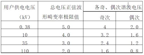 电网中任一点的电压正弦波形畸变率均不得超过表1规定的极限值。